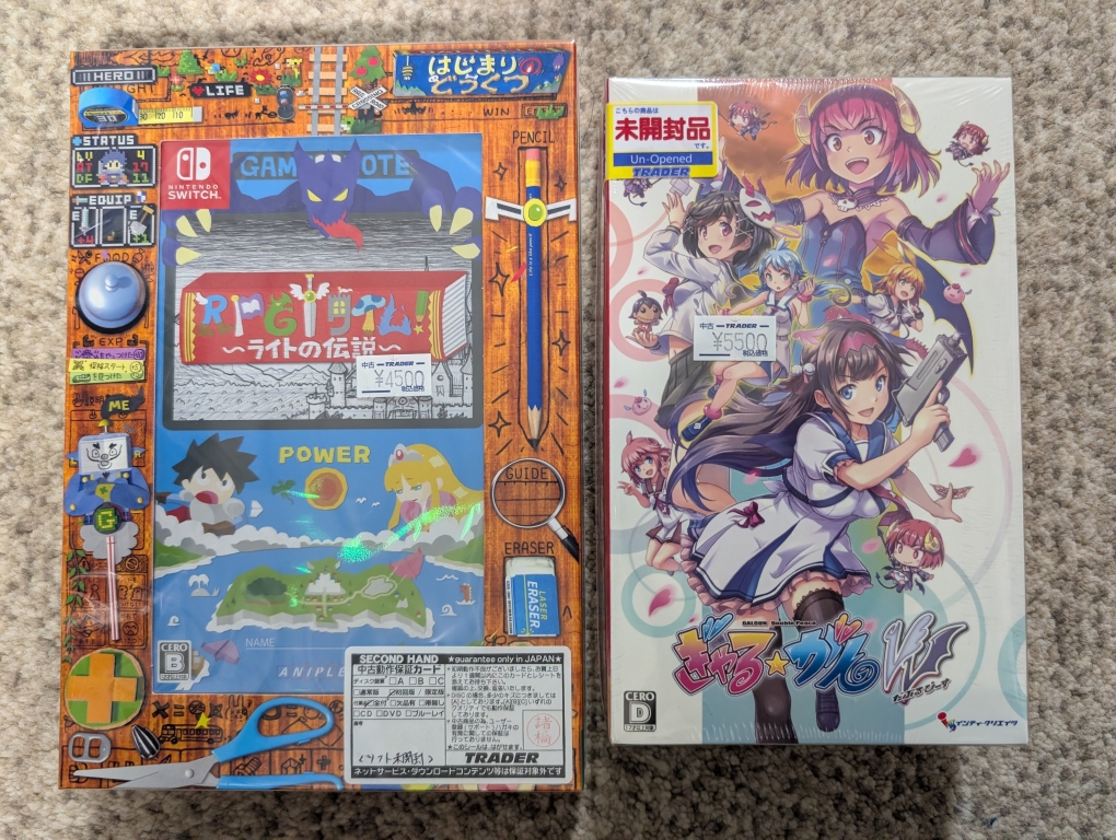 Switchソフトは秋葉原のトレイダ的なストアに行ったら新古品みたいなやつが売ってたから買ってしまった。一応発売日に買う候補リストに入れといたやつだけどなんだかんだで理由付けて買ってなかったやつら。